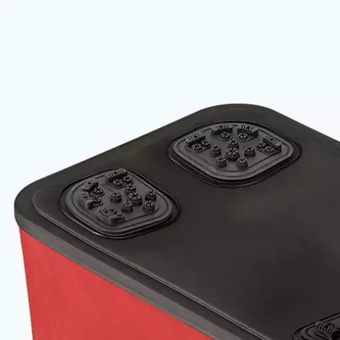 Rubber bottom feet with a three-dimensional shape that are difficult to slip even on the shore with large irregularities.
